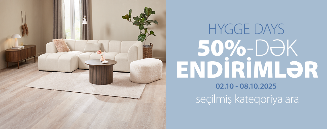 02 – 08.10.2025 tarixlərində JYSK-da HYGGE DAYS kampaniyası zamanı seçilmiş məhsullarda 50%-dək endirim sizi gözləyir.