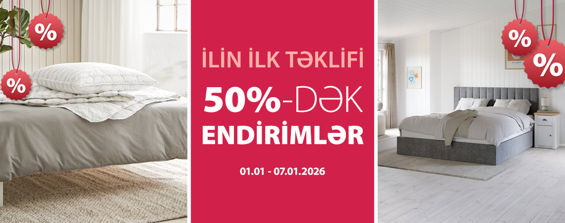 JYSK - Yuxu mədəniyyəti sahəsində ekspertdir və keyfiyyətli istirahət üçün lazım olan hər şeyi təklif edir. 01.01 - 07.01.2026 İlin ilk təklifindən yararlanın və 50%-dək endirimlə keyfiyyətli yastıq, döşək, top döşək və yataq dəsti əldə edin