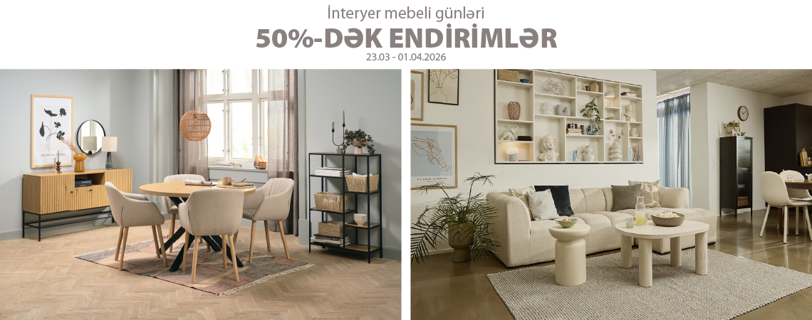 23 mart – 1 aprel 2026-cı il tarixlərində seçilmiş mebel və interyer məhsullarına 50%-dək ENDİRİMLƏR sizi gözləyir.