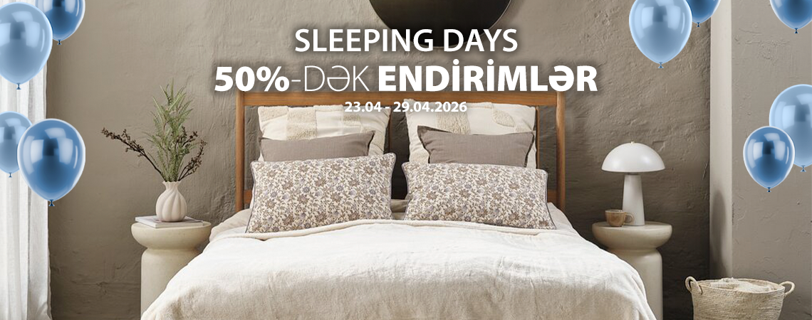 23.04–29.04.2026 tarixlərində seçilmiş yuxu məhsullarında 50%-dək möhtəşəm ENDİRİMLƏR Sizi gözləyir! Döşəklər, yastıqlar, yorğanlar və digər yuxu məhsulları — indi daha əlçatan qiymətlərlə, daha yüksək komfortla təqdim olunur. Yuxunuzu dəyişin, səhərlərinizi yeniləyin, çünki keyfiyyətli istirahət — yeni enerjinin başlanğıcıdır.