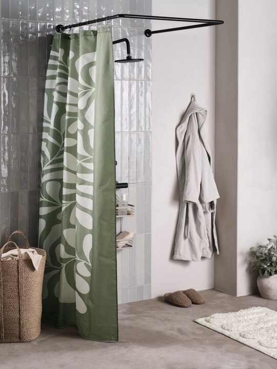 BAGGETORP Hamam pərdəsi 180×200, zeytun yaşılı rəngdə.