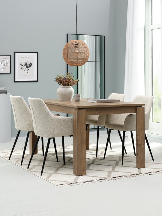 VEDDE 120 masa vəhşi palıd + 4 ədəd JONSTRUP stul rəng kari/tünd palıd