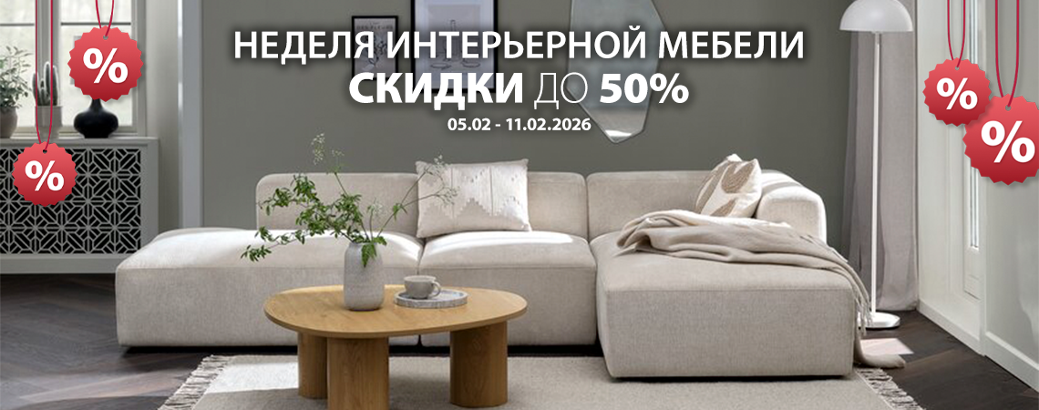Скидки до 50% в неделю интерьерной мебели с 05.02 по 11.02.2026 — вас ждут невероятные предложения на большой выбор мебели для интерьера: от обеденных столов и стульев до офисной мебели, буфетов и витрин. Не пропустите!