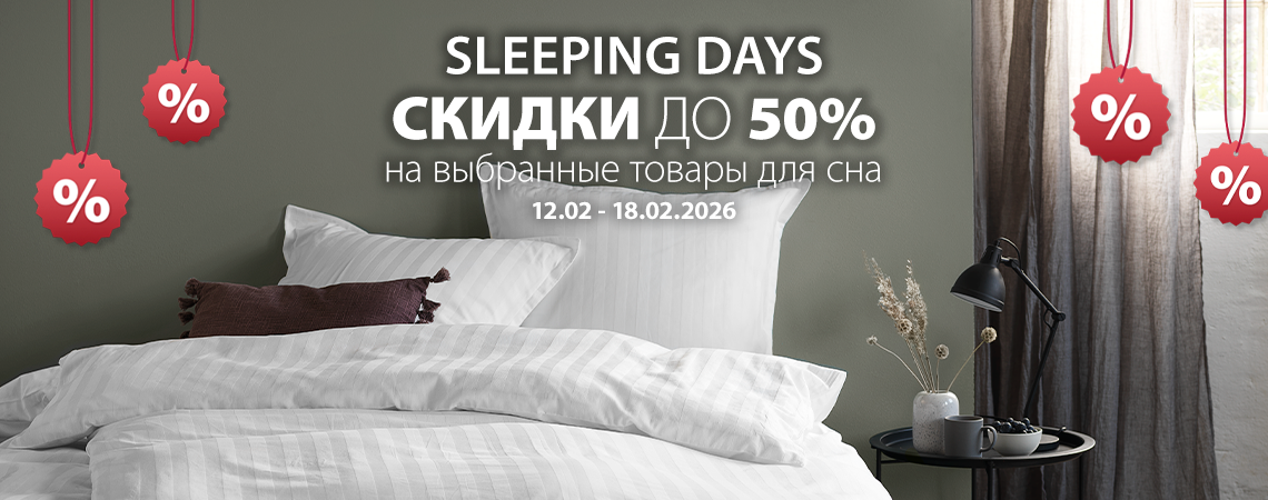Неделя Sleeping Days начинается и предлагает специальные предложения для комфортного сна. С 12.02 по 18.02.2026 вы можете приобрести выбранные товары для сна со скидкой до 50%. Качественные матрасы, удобные подушки, тёплые одеяла и другие товары ждут вас по более выгодным ценам в рамках акции. Воспользуйтесь скидками Sleeping Days, обновите качество своего сна и начинайте каждое утро более бодро.
