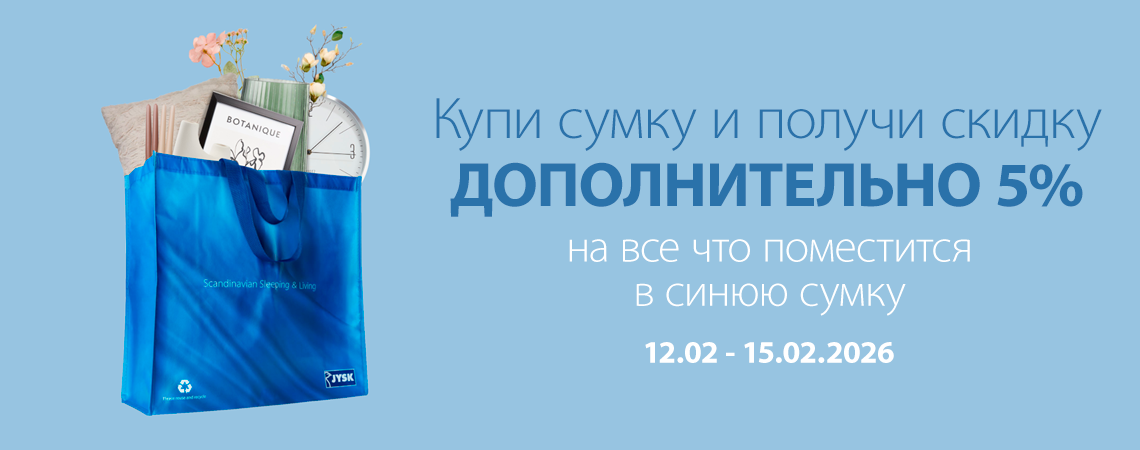 Купи синюю сумку и получи дополнительную скидку!С 12.02 по 15.02.2026 приходите в наши магазины и получите дополнительную скидку 5% на всё, что поместится в сумку!