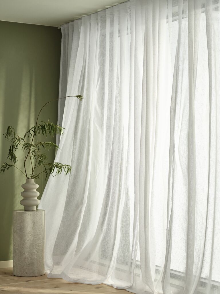 Прозрачные шторы легкие и прозрачные, создавая деликатное и воздушное ощущение в любом пространстве. Они пропускают большое количество естественного света, одновременно обеспечивая определенную степень уединения. Прозрачные шторы идеально подходят для создания легкого, летнего и романтичного внешнего вида, что делает их идеальными для гостиных, спален и столовых — комнат, где важна легкая и открытая атмосфера.